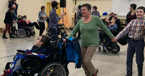 Un groupe de musiciens et un calleur sont venus pour faire danser les parents et les élèves en adaptant les danses traditionnelles à la réalité des fauteuils roulants. Rigodons, sets carrés, quadrilles étaient au rendez-vous! Les parents et les élèves ont aussi eu la chance de déguster de la bûche de Noël et de la crème glacée et de se faire croquer le portait dans le « photobooth » de Noël.