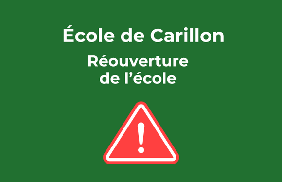Nous avons le plaisir de vous annoncer la réouverture de l’école de Carillon ce jeudi 25 avril.