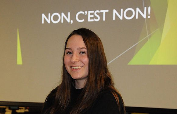 C’est dans le cadre de son projet personnel au PEI que Manuela a décidé, il y a un an, de traiter du sujet et de faire partie de la solution, soucieuse de bien informer les jeunes de son âge à la gravité des gestes à connotation sexuelle commis sur autrui. Deux groupes de 4e secondaire ont assisté à sa conférence pour l’occasion, sous la supervision de personnes-ressources de l'école.