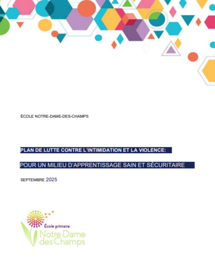 Voici le PALVI 2025-2026 ( Plan de lutte contre la violence et l'intimidation)
