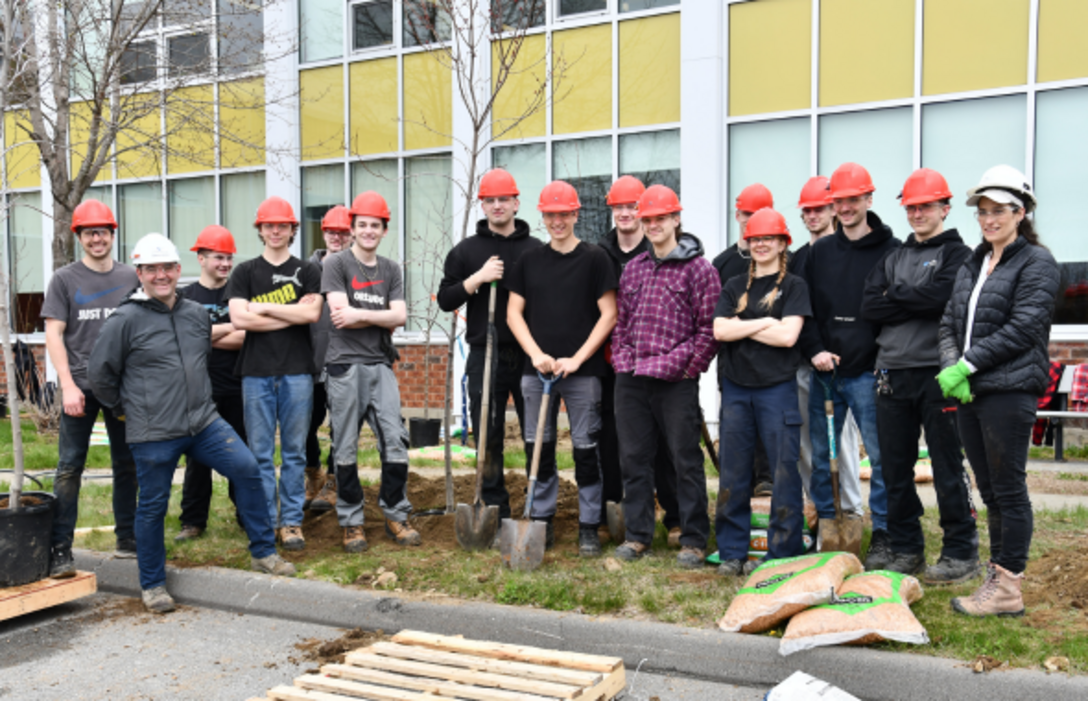15 élèves de charpenterie-menuiserie plantent une vingtaine d’arbres devant le Centre 24-Juin
