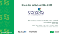 NOM DE LA FACULTÉ ICI Bilan des activités 2024-2025 Présentation au Comité consultatif de gestion du CSSRS Club de golf de Sherbrooke 28 mai 2025 Marie-France Nadeau, M.ps., Ph. D., Professeure…