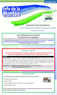 SEPTEMBRE 2018 Voici le premier bulletin d’informations de la Montée pour l’année 2018-2019. Ce bulletin sera produit au début de chaque mois et est déposé sur le portail de l’école. Vous y…