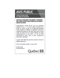 AVIS PUBLIC Centre de services scolaire de la Région-de-Sherbrooke ADOPTION DU RÈGLEMENT CONCERNANT LE TRAITEMENT DES PLAINTES SUR DES SUJETS AUTRES QUE LES SERVICES RENDUS AUX ÉLÈVES Conformément à…