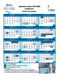 Calendrier scolaire 2019-2020 Enseignement primaire et secondaire D 7 14 21 28 L M M J V S 1 2 3 4 5 6 8 15 22 29 9 10 16 17 23 24 30 Septembre 2019 Août 2019 Juillet 2019 …