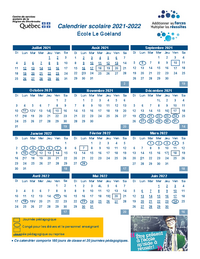 Calendrier scolaire 2021-2022 École Le Goéland Juillet 2021 Di Septembre 2021 Août 2021 Lun Mar Mer Jeu Ven Sa Di Lun Mar Mer Jeu Ven Sa 1 2 3 1 2 3 4 5 6 7 Di Lun Mar Mer Jeu Ven Sa…