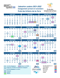 Calendrier scolaire 2021-2022 Enseignement primaire et secondaire École des Enfants-de-la-Terre Août 2021 Septembre 2021 Dim Lun Mar Mer Jeu Ven Sam Dim Lun Mar Mer Jeu Ven Sam Juillet 2021 Dim…