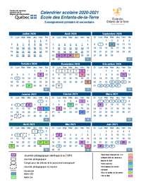 Calendrier scolaire 2020-2021 École des Enfants-de-la-Terre Enseignement primaire et secondaire Juillet 2020 Di Septembre 2020 Août 2020 Lun Mar Mer Jeu Ven Sa 1 2 3 4 Di Lun Mar Mer Jeu Ven…