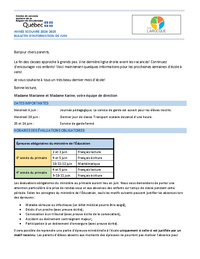 ANNÉE SCOLAIRE 2024-2025 BULLETIN D’INFORMATION DE JUIN Bonjour chers parents, La fin des classes approche à grands pas. Une dernière ligne droite avant les vacances! Continuez d’encourager vos…