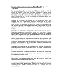 Équipe de francisation du Centre Saint-Michel (lu par Carl Tourigny) Les cours de francisation au Centre Saint-Michel ont débuté en 1990-91. Depuis, la clientèle a subi une importante croissance.…