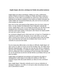 Angèle Séguin, directrice artistique du Théâtre des petites lanternes Angèle Séguin est auteure dramatique, metteure en scène, conférencière, membre fondatrice et directrice artistique du Théâtre…