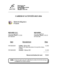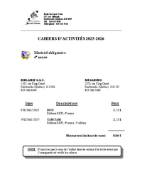 FOURNITURES SCOLAIRES 2025-2026 MATÉRIEL OBLIGATOIRE 6e ANNÉE CE MATÉRIEL PEUT ÊTRE ACHETÉ AU MAGASIN DE VOTRE CHOIX ** Du matériel usagé peut également être utilisé ** Le matériel périssable peut…