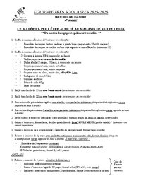 FOURNITURES SCOLAIRES 2025-2026 MATÉRIEL OBLIGATOIRE 4e ANNÉE CE MATÉRIEL PEUT ÊTRE ACHETÉ AU MAGASIN DE VOTRE CHOIX ** Du matériel usagé peut également être utilisé ** 1 Coffre à crayons. À…