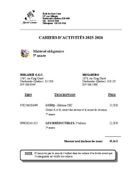FOURNITURES SCOLAIRES 2025-2026 MATÉRIEL OBLIGATOIRE 3e ANNÉE CE MATÉRIEL PEUT ÊTRE ACHETÉ AU MAGASIN DE VOTRE CHOIX ** Du matériel usagé peut également être utilisé ** 10 Crayons à la mine (le…