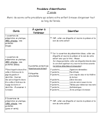 Procédure d’identification 2e année Merci de suivre cette procédure qui aidera votre enfant à mieux s’organiser tout au long de l’année. Outils À ajouter à l’intérieur Identifier 1 couverture de…
