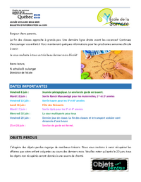 ANNÉE SCOLAIRE 2024-2025 BULLETIN D’INFORMATION de JUIN Bonjour chers parents, La fin des classes approche à grands pas. Une dernière ligne droite avant les vacances! Continuez d’encourager vos…