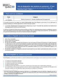 Avis de désignation des membres du personnel – 2e tour au Conseil d’administration du Centre de services scolaire de la Région-deSherbrooke (ci-après « CSSRS »)1 1 – Poste ouvert aux candidatures…