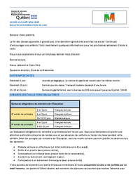 ANNÉE SCOLAIRE 2024-2025 BULLETIN D’INFORMATION DE JUIN Bonjour chers parents, La fin des classes approche à grands pas. Une dernière ligne droite avant les vacances! Continuez d’encourager vos…