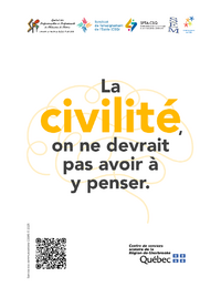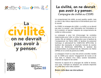 La civilité, on ne devrait pas avoir à y penser. Campagne de civilité au CSSRS Un comportement de civilité, ça peut paraître anodin, mais ça mène à des milieux respectueux et bienveillants pour tout…