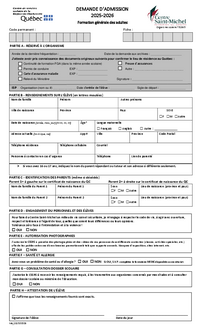 DEMANDE D’ADMISSION 2025-2026 Formation générale des adultes Code permanent : Organisme scolaire 752365 Fiche : PARTIE A - RÉSERVÉ À L’ORGANISME Année de la dernière fréquentation : __________ …