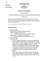 CONSEIL D’ÉTABLISSEMENT École des Deux-Rives Pavillon Marie-Immaculée, salon du personnel Mardi 24 septembre 2023 18h30 Ordre du jour Présences : Marie-Christine Bélisle (direction), Anik Robert…