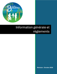 Information générale et règlements Révision : Octobre 2024 i Table des matières Horaire de l’école _______________________________________________________________________ 3 Fréquentation scolaire…