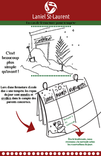 Laniel St-Laurent En cas de fermeture pour tempête C'est beaucoup plus simple qu'avant ! Lors d'une fermeture d'école due à une tempête, les repas du jour sont annulés et crédités dans le compte…