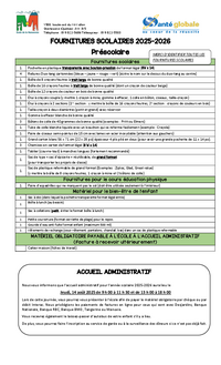 Fournitures scolaires 2025-2026 1re année 1 10 3 1 1 4 1 1 1 Étui souple (identifié au nom de l’enfant) qui contient ce qui suit : Crayons à mine HB taillés Gommes à effacer blanches Bâton de colle…