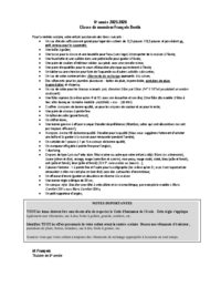 6e année 2025-2026 Classe de monsieur François Dostie Pour la rentrée scolaire, votre enfant aura besoin des items suivants : • Un sac d’école suffisamment grand pour loger des cahiers de 12,5 pouces…