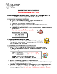 RESPONSABILITÉS DES PARENTS Document à conserver toute l’année La collaboration des parents est toujours souhaitée et essentielle afin de maintenir un milieu de vie sécuritaire et harmonieux qui…