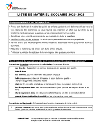 LISTE DE MATÉRIEL SCOLAIRE 2025-2026 Quelques conseils de la part de l’équipe-école : • Prenez soin de choisir du matériel de qualité; les enfants apprécient avoir de bons outils de travail et vous…