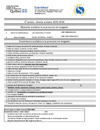 École Brébeuf 1875, rue Albert-Skinner, Sherbrooke (QC) J1J 1W8 Tél. : 819-822-5644 / Télécopieur: 819-822-5645 brebeuf@csrs.qc.ca 5e année - Année scolaire 2025-2026 Manuels scolaires à se procurer…