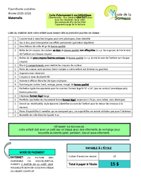 Fournitures scolaires Année 2025-2026 Carte d’abonnement à une bibliothèque (Sherbrooke : Éva Sénécal GRATUIT pour tous les résidents de la ville). Recommandé afin de faciliter l’apprentissage de la…