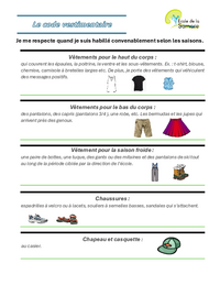 Je me respecte quand je suis habillé convenablement selon les saisons. Vêtements pour le haut du corps : qui couvrent les épaules, la poitrine, le ventre et les sous-vêtements. Ex. : t-shirt, blouse,…