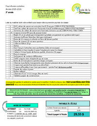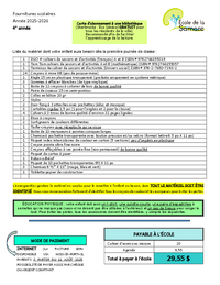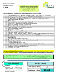 Fournitures scolaires Année 2025-2026 Carte d’abonnement à une bibliothèque (Sherbrooke : Éva Sénécal GRATUIT pour tous les résidents de la ville). Recommandé afin de faciliter l’apprentissage de la…