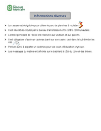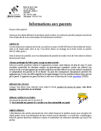 École du Sacré-Cœur 137, rue Gillespie Sherbrooke (Québec) J1H 4W9 Tél.: 819 822-5690 Télécopieur : 819 822-5543 Informations aux parents Bonjour chers parents, Avant que les enfants débutent la…