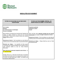 MODALITÉS DE PAIEMENT ÉLÈVES EN VOCATION OU AU PARCOURS SCIENTIFIQUE Art et culture Musique Art, communication et technologie Parcours scientifique ÉLÈVES AU PROGRAMME GÉNÉRAL, EN ADAPTATION…