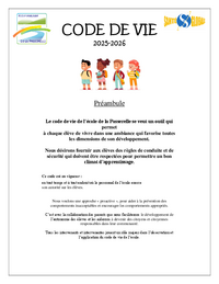 CODE DE VIE 2025-2026 Préambule Le code de vie de l’école de la Passerelle se veut un outil qui permet à chaque élève de vivre dans une ambiance qui favorise toutes les dimensions de son…