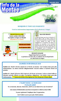 JANVIER 2019 - ***INSCRIPTION EN LIGNE*** Année scolaire 2019-2020 Inscription en ligne via Mozaïk 28 janvier au 15 février FIN DE LA 2E ÉTAPE Le 31 janvier 2019 GALA DES BRAVOS Le Gala des…