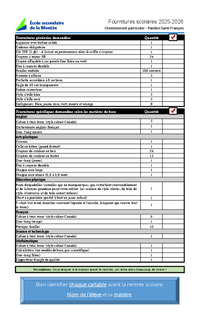 Fournitures scolaires 2025-2026 Classe d'accueil Fournitures générales demandées Cadenas - Se pratiquer à la maison avant la rentrée… on évite alors beaucoup de stress ! Cahier à trois trous (style…
