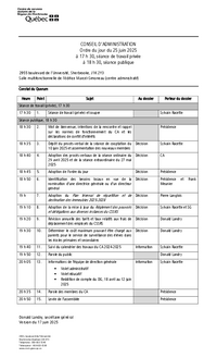 CONSEIL D’ADMINISTRATION Ordre du jour du 25 juin 2025 à 17 h 30, séance de travail privée à 18 h 30, séance publique 2955 boulevard de l’Université, Sherbrooke, J1K 2Y3 Salle multifonctionnelle de…